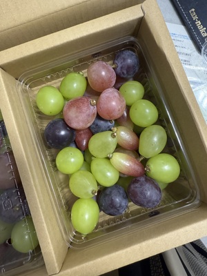 今日楽しみにしていた返礼品が届きました。5種類の葡萄が綺麗に詰められていて、箱を開けた瞬間からテンションが上がりました。葡萄の品種一覧も添えられており、他の葡萄もぜひ食べてみたいなと思いました。房から綺麗に外されているので保存にも便利です。ありがとうございました。