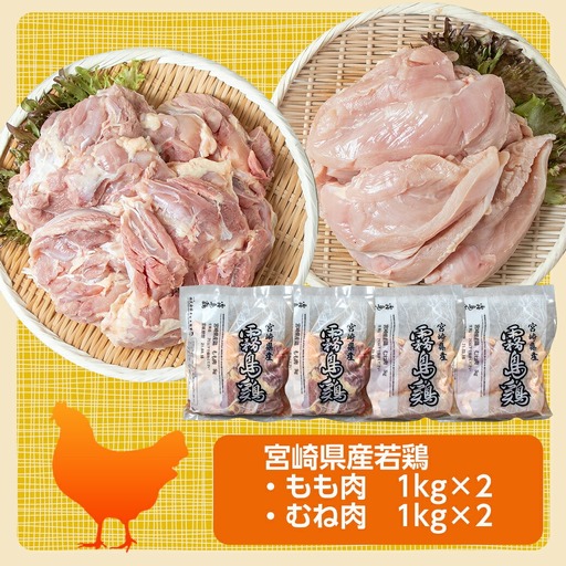 【業務用】宮崎県産若鶏4kgセット_AA-G303_(都城市) 鶏肉 モモ ムネ 各1kg×2P 計4kg 大容量 冷凍