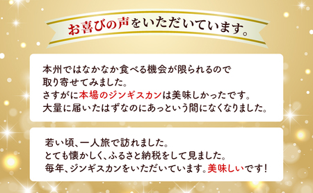 厚岸町では牡蠣が有名ですが、はじめてジンギスカンをお願いしてみました。説明に書いてあるとおり牡蠣エキスの作用か大変柔らかく、たれも家族全員お気に入りの味です。おいしく頂きました。またリピート必至です。