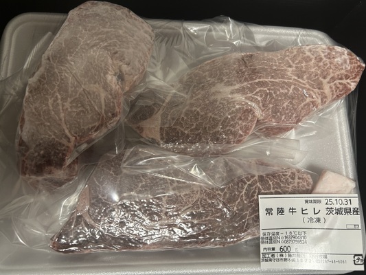 年末の駆け込みふるさと納税で、家族のリクエストで和牛ヒレステーキのスピード発送可能な、つくばみらい市の礼品に納税させていただきました。クリスマスの2日前に届き、チルド室でじっくり解凍。少しさしも入った常陸牛ヒレ肉は、柔らかてとても美味でした。幸せいっぱいのクリスマスディナーになりました。