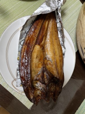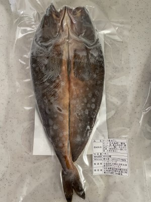 魚焼き網を持っていない我が家は無粋ながら26センチのフライパンを使って魚を焼くのですが、頂戴した品物は尾・頭を落としてもフライパンに収まらず、半身にしたうえに、それぞれを更に半分に切って焼きました。何を言いたいかというとそれ位大きいということで、1枚で2人分の大きさです。味は言うことなしのおいしさです。