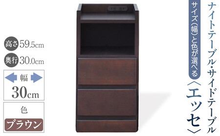 【ベットやソファの横に便利な棚】サイズと色が選べるナイトテーブル・サイドテーブル(エッセ)(ブラウン・幅30cm)