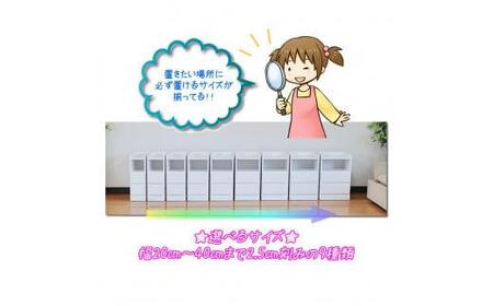 置く場所に応じて幅や色を自由に選べます。一番の特徴は、2.5cm刻みで選べる幅です。
