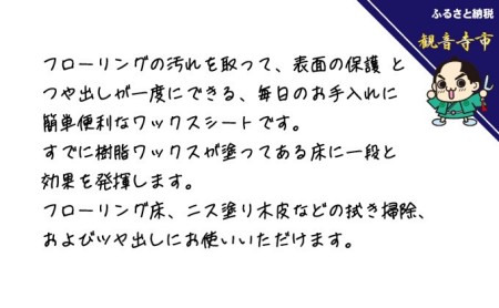 フローリングの汚れを取って、表面の保護とつや出しが一度にできる、毎日のお手入れに簡単便利なワックスシートです。すでに樹脂ワックスが塗ってある床に一段と効果を発揮します。