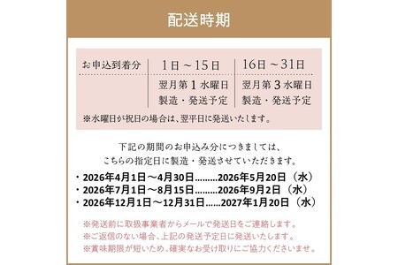 2026年12月1日~12月31日のお申込み→2027年1月20日(水)製造・発送