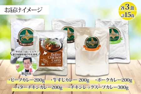 【関連ワード】カレー 5種 食べ比べ 計15個 中辛 バターチキンカレー スープカレー ビーフカレー ポークカレー 牛すじカレー 業務用 レトルト 保存食 備蓄 非常食 常温 まとめ買い グルメ 28000円 送料無料 北海道 弟子屈町