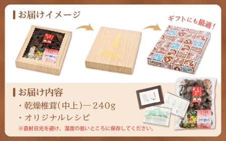 福井県産 乾燥しいたけ Aセット(中上240g)原木栽培 レシピ付き【きのこ キノコ 茸 しいたけ シイタケ 椎茸 常温】 [e06-a003]