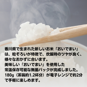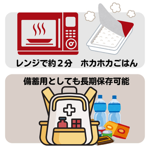こだわりのご当地米で常温保存可能な無菌パックが完成。180g(茶碗約1.2杯分)が電子レンジで約2分、いつでも素早くお召し上がりいただけます。