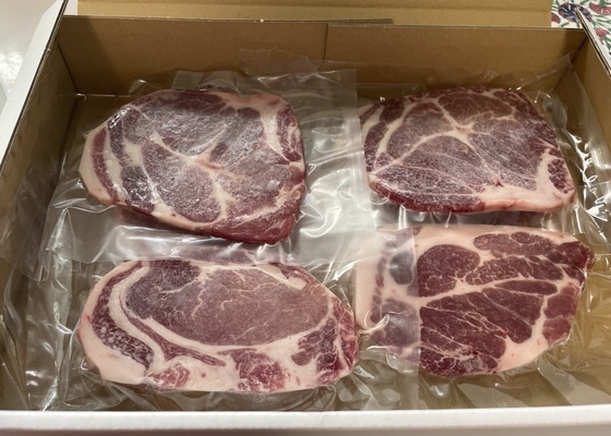 こちらの豚肉はとてもよかったです。まず一枚一枚が密閉されて個包装になっているので届いてすぐに冷凍庫に入れられる点は最高に便利です。また、厚さがちょうど良くてステーキ肉として焼くのにちょうど良いのでとてもよかったです。