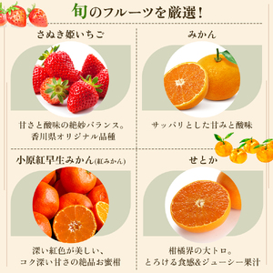 果物好きの、果物好きによる、果物好きのための詰め合わせ!をモットーに、その確かな視覚と味覚をもちまして、四季折々における、旬を見極めた観音寺産の厳選フルーツを5~7種類詰め合わせ、定期便でお届け致します。