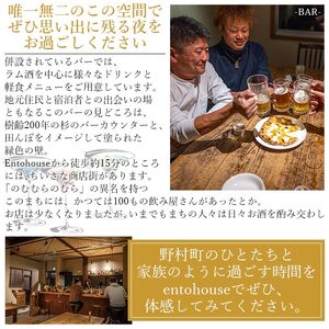 entohouseBAR&GUESTHOUSEにお一人がご一泊いただけるチケットです。