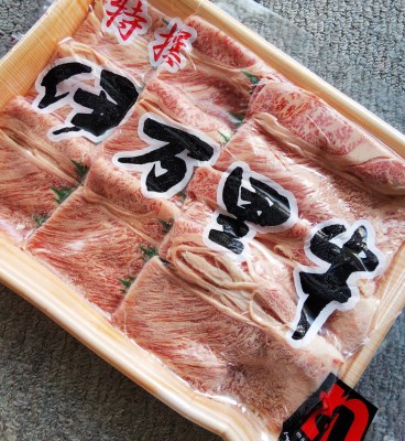 毎年、すき焼き用にいただく銘柄牛。いつも期待以上の旨さ(期待は高まっているはずなのに??)。スライスの大きさや霜降りの具合など、すき焼きで適度に焼きを入れるときには最高の具合でいつも大変満足している。