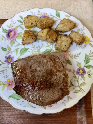 赤身肉なので、まさに「肉を食べてる!」という食べ応えのある肉です。肉の味もしっかり味わえます。けっこうな厚さなので、通常のステーキ肉より焼く時間がかかりました。とろけるような肉をお好みの方は、別のものをオススメします。