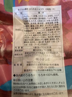 上品で美味しいお菓子です。小倉山荘のをぐら山春秋は有名ですが、あられだけの物しか食べたことはありませんでした。期間限定のあられ&チョコは、同じくらいオススメで。チョコ系が3種類も入っていて、1袋でしょっぱい物と甘いものが食べられて嬉しいです。