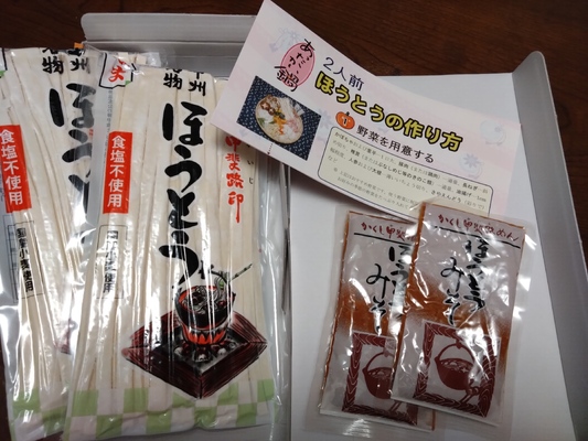 今回初めて頂きました。初めめほうとうを食べましたが、麺がとてもプルプルしていて美味しかったです。味は想像より少し薄めでした。次はお湯を少なめにしようかなと思っています。寄付金額も少なめだったのでとてもお手軽です。