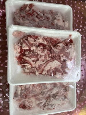 冷凍で3パックに分かれて届きました。400グラムずつ、のはずですが、もっとぎっしり入っている感じがします。早速2パック解凍して、牛丼と塩牛丼を作りました。身も柔らかくしっかりしていて、脂も甘味がありとても美味しい牛肉でした。余るかな、と思いましたが、子供たちがたくさんおかわりして一度の夕飯でなくなってしまいました。ご馳走さまでした。