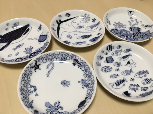 絵柄が全部違っていて、とてもかわいいです。大きさも取り皿として、使いやすく、届いた日から、大変活用させてもらっています。厚さも薄めで、重さも軽く、気に入りました。ジンベエザメが特にかわいくて、好きです。