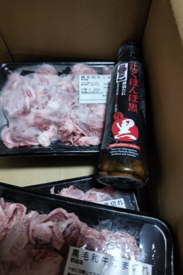 すき焼き、肉じゃが、牛丼、何にでも使えそうな黒毛、和牛の細切れを頼みました。ちょうど良いサイズの250グラム6個セット、タレ付きです。何かと重宝しそうなセットなので、美味しかったらまたリピートしたいと思います。