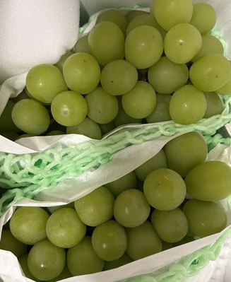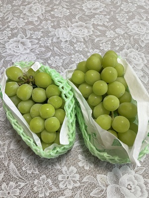 子供がものすごくハマっていまして、単身赴任中の、私は食べることができないと思うのですが、ついポチっとしてしまいました。 昨年は山梨県の別の地域のシャインマスカットを密林で入手したのですが、とても美味しく、大変期待しております。