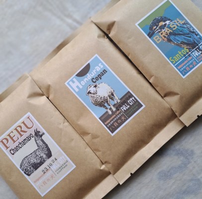 ペルー産、ホンジュラス産、ブラジル産と、南米大陸の国々の新鮮なコーヒー豆が届きました。パッケージも素敵です。  サントスはもともと好きなコーヒーですが、コパンやチャンチャマイヨは初めて知りました。どんな味がするのか、とても楽しみです。