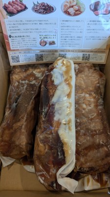 一つのブロックが大きなお肉の塊で、食べ応え抜群でした。 タレは少し甘めだったので、もう少し辛めの方が好きですが、お肉はとろけるくらい柔らかく、とっても美味しかったです。 家族4人で食べてますが、量も多いので長く楽しめます。