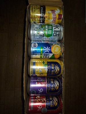 いろいろなチューハイを6種類も選ぶことができるなんてすばらしい。何を選ぶか悩みましたが,それも楽しかったです。送られてきたものを箱から出して,各種類が1本ずつ順に飲めるように詰め直しました。いろいろな味を順に楽しんでいます。