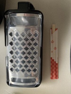 プラのおろし金が割れてしまったので、こちらを。 2週間程度で届きました。 結構大きいです。レンガひとつよりまだ大きい。 微妙にカーブしていて、よく下ろせます。 受け皿が、メッシュになっていて、余分な水分を落とせる仕組みになっています。これはいいですね。 あとは、歯がどれだけ長持ちするか、ですが、使った感じはとても良いです。