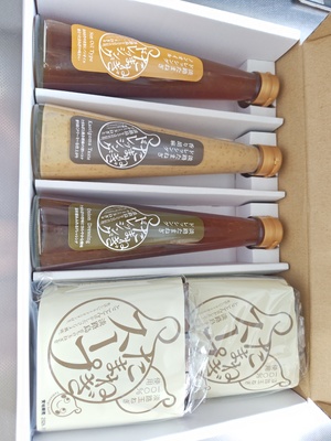 玉ねぎドレッシングは二十歳の息子の大好物なので、今回選ばせて頂きました。瓶はおしゃれなのですが、家族四人だとあっという間になくなりそうなので、もっと容量が多いと嬉しいです…。3種類ありましたが、どれも美味しかったです。スープはまだ息子しか飲んでいませんが、美味しかったようです。寒い朝、コーンスープやみそ汁に代えて時々玉ねぎスープを頂きたいと思います。