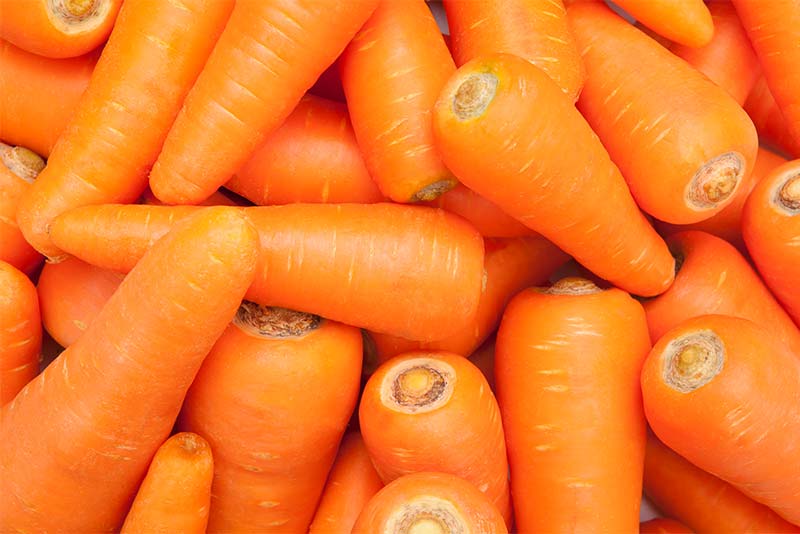 β-カロテンは植物性食品に含まれる栄養素で、にんじん・ほうれん草・小松菜などの緑黄色野菜や、赤肉メロン・あんずなどの果物に豊富です。
