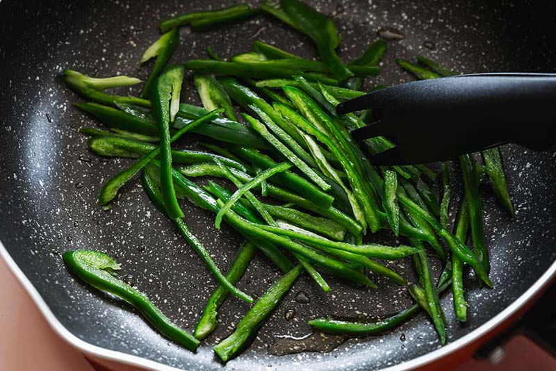 加熱具合はピーマンが柔らかくならない程度が目安です。