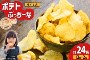 けんぶち産のじゃがいもで作ったポテトチップス「ポテトぷっちーな」うすしお味、なんと24袋(12袋入×2箱)です。