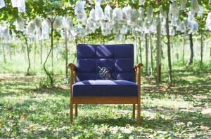 巨峰のおいしさの証である白い粉(ブルーム)がついている実の色に見えるようモケット織を採用し、糸の色から選定して、一から新しく織り上げました。