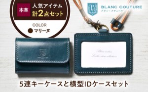 革工房「ブラン・クチュール」がハンドメイドで仕立てる、上質な国産牛ヌメ革を使用した「5連キーケース」と「ネックストラップ付きIDケース」の贅沢なセットです。