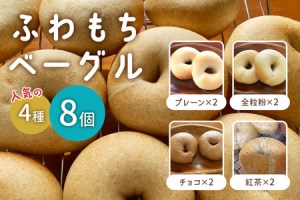 [ふわもちベーグル] 人気の4種 (プレーン2個・全粒粉2個・チョコ2個・紅茶2個)|パン 冷凍 朝