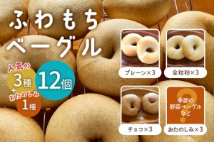 [ふわもちベーグル] 人気の3種とおたのしみ3個(プレーン3個・全粒粉3個・チョコ3個・おたのしみ3