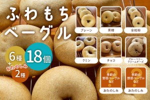 [ふわもちベーグル] 8種 18個セット (プレーン・黒糖・全粒粉・クミン・チョコ・ブルーベリークリ
