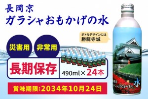 【製造日から10年保存可能】非常用備蓄水「長岡京ガラシャおもかげの水」490ml×24本 [0928