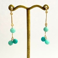 軽い付け心地のイヤリングパーツに、少しずつ色味の違う3粒のアマゾナイトをあしらいました。