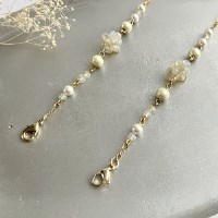 ネックレスやマスクチェーンの3wayでお使いいただける、ベージュのコットンパールを使用した華やかな雰囲気のメガネチェーンです。