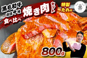 肉の喜与乃 黒毛和牛特製たれ付 焼き肉セット (800g)厳選4種 食べ比べ [0216]