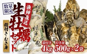 【兵庫県相生市】★先行予約★殻付き生牡蠣 4kg,むき身 生牡蠣500g×2【漁師直送!】