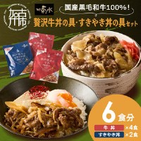 【神戸菊水】国産黒毛和牛100%!贅沢牛丼の具×2・すきやき丼の具×1セット(計6食分)