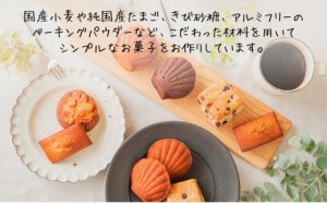 国産小麦や純国産たまご、きび砂糖、アルミフリーのベーキングパウダーなどこだわった材料を用いてシンプルなお菓子をお作りしています。