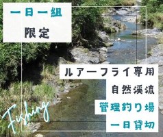 揖保川源流倉床川に2025年3月1日にオープンのルアーフライ専用管理釣り場「繁盛ルアーフライエリア」を一日貸切りでご利用いただけます。