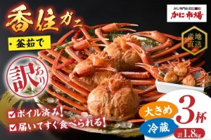 訳あり 茹で香住ガニ(茹でベニズワイガニ)大きめサイズ 約600g×3匹(約1.8kg以上)