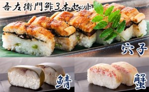 吾左衛門鮓の中でも人気の高い「さば、かに、穴子」の3本セットです。
