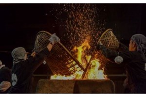 砂鉄と木炭を燃焼させて鉄をつくりだす日本古来の製鉄法「たたら製鉄」。