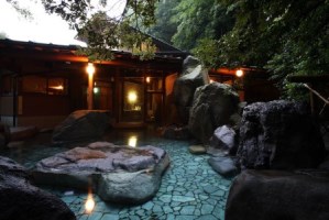 大岩で造られた露天風呂は樹齢800年の椎の木を眺めながら入浴いただけます。