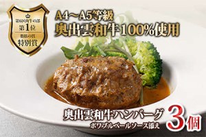 奥出雲和牛のプレミアムハンバーグ ポワブルベールソース添え(3個)セット