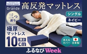 高反発 マットレス 三つ折り メディカルスリーパーグランデ シングル 【ネイビー】